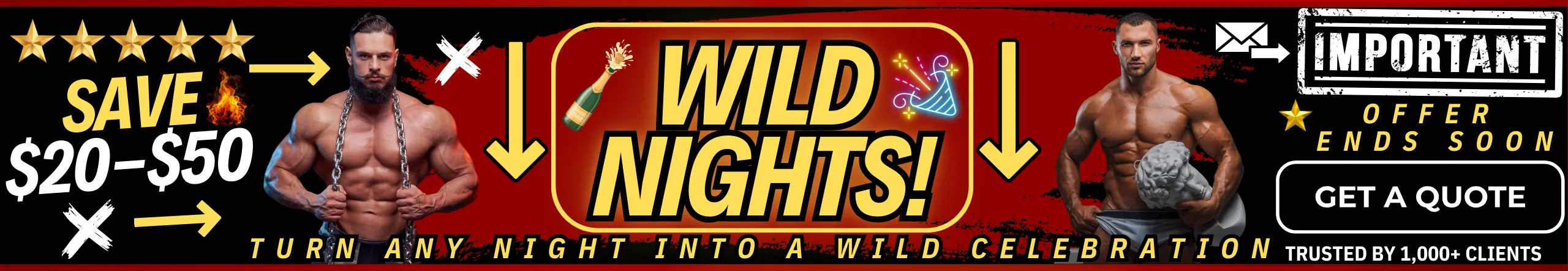 Looking to hire professional Male Butlers for your next celebration? Our elite male butlers are available for bachelorette parties, despedidas de soltera, ladies’ nights, girls’ night out, birthday parties, divorce parties, LGBTQ+ events, and private parties nationwide. We also offer upscale party services including male butlers, cabana boys, shirtless bartenders, and sip & paint male models, all carefully selected for their looks, personality, and professionalism. Whether you’re booking one entertainer or a full male revue experience, we make it easy to find the best male entertainers near you for a fun, stylish, and unforgettable event.